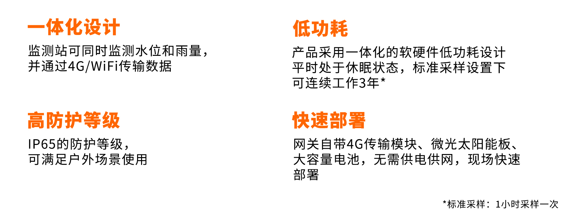内置4G传输模块和大容量电池,外装微光太阳能充电板,无需额外供电及供有线网络,现场可快速部署。